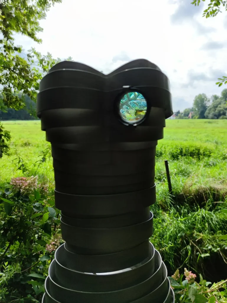Paccha Princess es una escultura que combina vidrio, metal y tecnología para reflexionar sobre la relación vital entre agua, bosque y ser humano. La pieza incorpora un torso metálico que resuena como tambor ceremonial con una grabación interior, evocando el latido del corazón frente al entorno natural. Gracias a sensores de humedad, arduinos y paneles solares, el ritmo se intensifica cuando el suelo está húmedo y disminuye cuando se seca, subrayando la dependencia mutua entre ecosistema y vida humana.