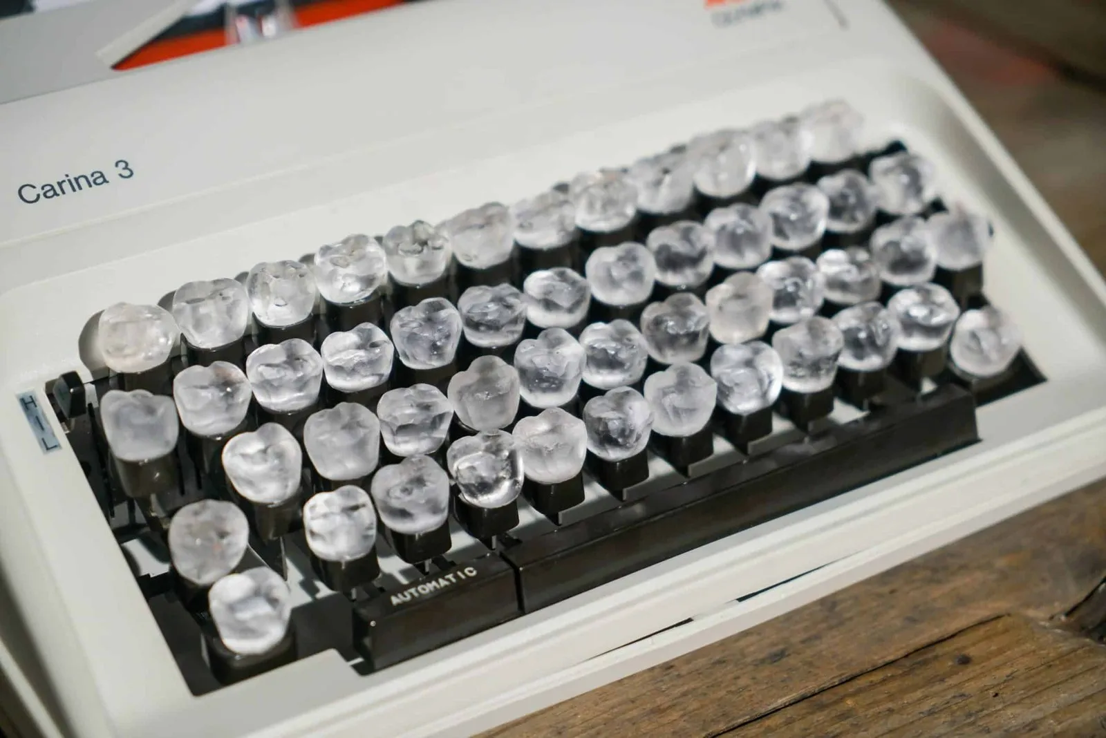 Las Historias que nos Contamos propone un giro hacia lo narrativo. Una máquina de escribir con teclas de vidrio invita a sentarse y crear, planteando la posibilidad de repetir una y otra vez el mismo relato o arriesgarse a inventar uno nuevo.